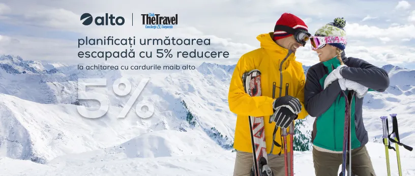 - 5% reducere instantă la planificarea călătoriilor prin The Travel Club, achitând cu unul din cardurile dumneavoastră alto